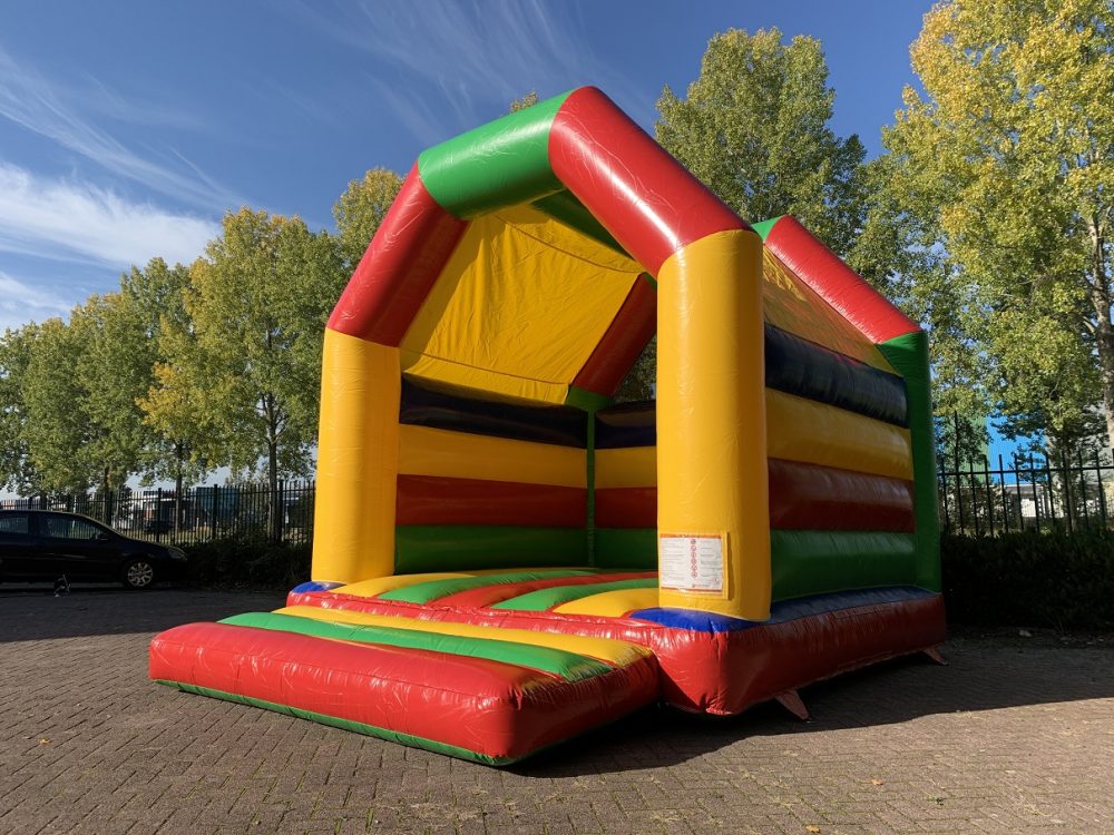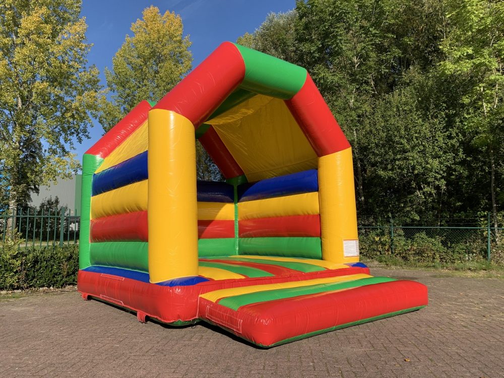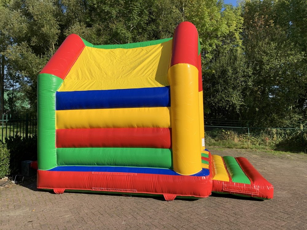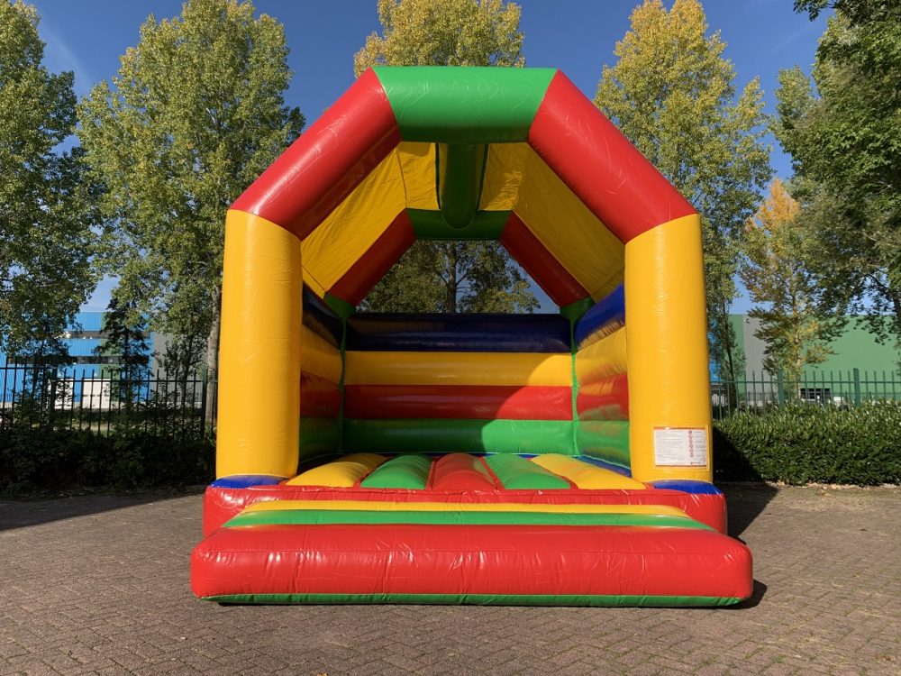 This standard Rainbow Bouncer with roof is a huge peak for renting! Because of the brightly colours this bouncer has a huge attractive power on children.