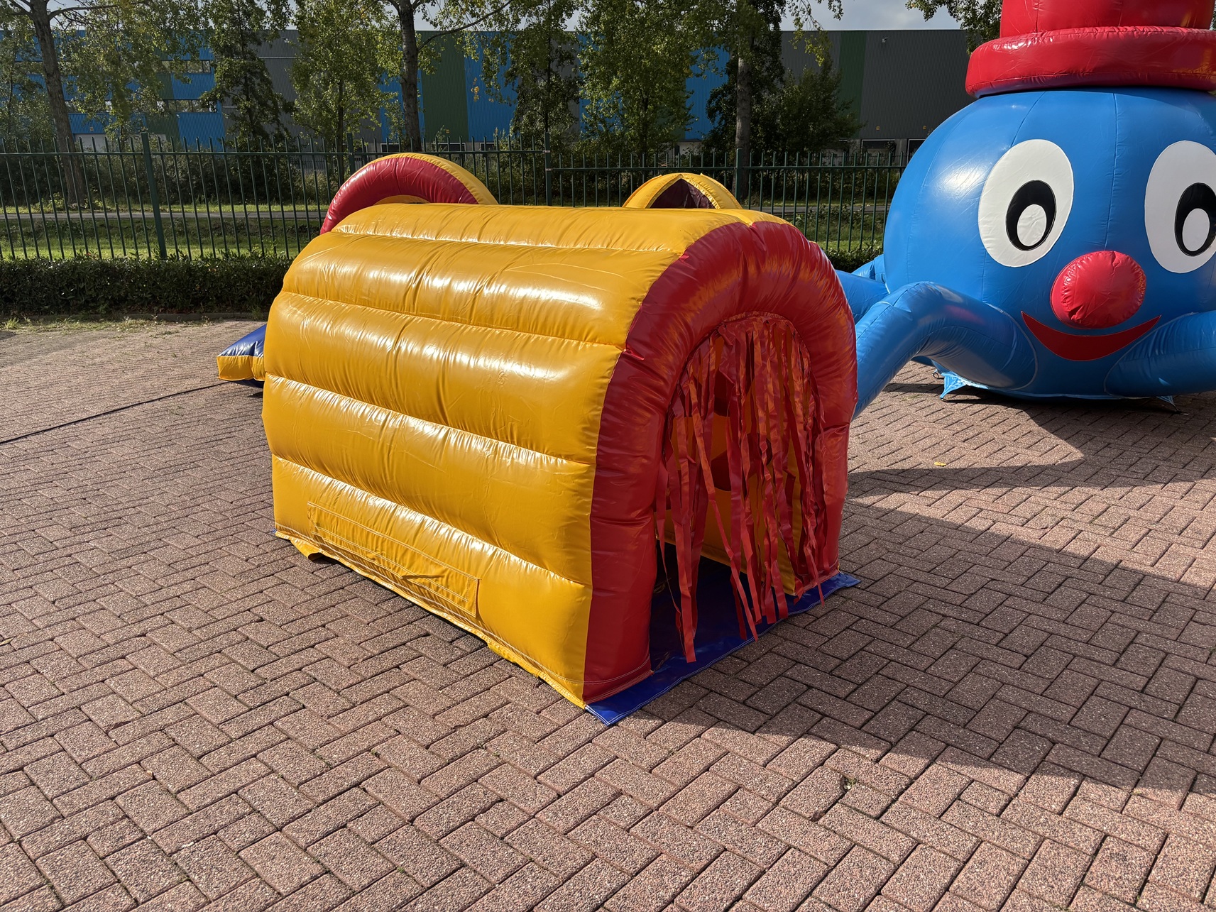 Castillo hinchable modelo pulpo de 6×5 metros, de segunda mano, esta en perfecto estado. Ideal para alquiler. Dispone de multitud de obstaculos y tobogan. Profesional. Fabricado en PVC, con 4 costuras. Incluye bolsa de transporte y kit de reparación.